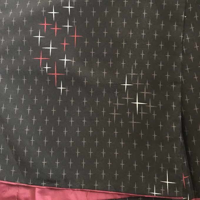 音曲祭に着て行った着物。加州カラーでいいなって思って。十字も星っぽいし。道行から鞄に至るまで全身赤と黒のみでコーデして行ったよ。 ほんとに楽しかったなー。 pic.twitter.com/iNNGi6W297