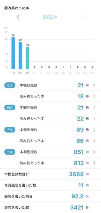 2022年3月に読み終わった本は18冊です booklog.jp/users/huitaine… #ブクログ pic.twitter.com/qqQdRG8lrC