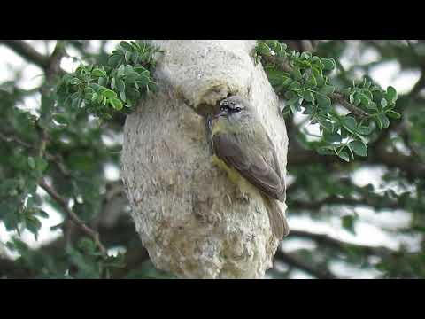 Kapokvoel, Cape Penduline-Tit.(Anthoscopus-minutus) youtu.be/-_ChfB_4iCk アフリカツリスガラの巣、調べてみたけどすごいね。羊の毛で作ってあってふかふかなんだって。入る時器用に入るのも可愛いけど、出た後ちゃんと出口閉めてるところもまた可愛い