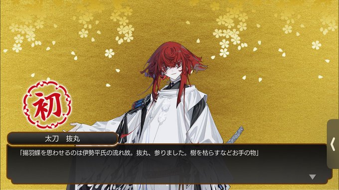 出る迄札使いまくって耐久鍛刀しようとしたら来てくれた~ 7. 梅 8. なし #刀剣乱舞 #鍛刀改修 ありがとう 助かる #抜丸 あとは札無しでゴリラ故カンストしてた資材でまったり鍛刀しよ pic.twitter.com/72KKvNODxh