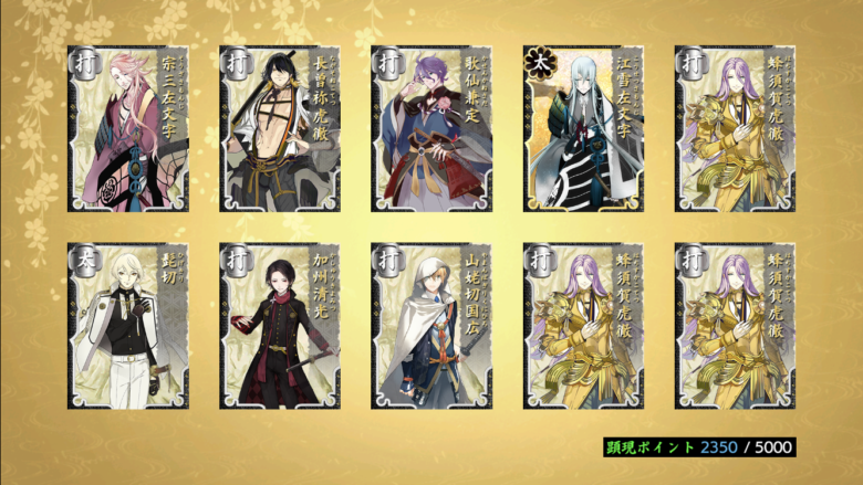#抜丸 期間限定鍛刀CP結果 投稿日2022年9月6日2022年9月6日投稿者say 札なし十連鍛刀で3振と、顕現ポイント5000引き換え1振で合計4振でした。 スクショ最初から撮っておけば良かったな。4. 松5. 梅6. なし#刀剣乱舞#鍛刀改修 pic.twitter.com/J16Z9CEfdt— say (@say_huitaine) August 29, 2022 出る迄札使いまくって耐久鍛刀しようとしたら来てくれた~7. 梅8. なし#刀剣乱舞 #鍛刀改修 ありがとう 助かる#抜丸 あとは札無しでゴリラ故カンストしてた資材でまったり鍛刀しよ pic.twitter.com/72KKvNODxh— say (@say_huitaine) August 29, 2022 札無し9〜11回目#刀剣乱舞 pic.twitter.com/z7P45Rjcl1— say (@say_huitaine) August 30, 2022 12〜14 札無し#刀剣乱舞 pic.twitter.com/lNkr5whQyh— say (@say_huitaine) August 30, 2022 #鍛刀改修 十連15~18回目札なし流石に抜丸さんは来てくれないなぁ#刀剣乱舞 pic.twitter.com/64id6mmz3K— say (@say_huitaine) August 31, 2022 #鍛刀改修 十連19~22回目札なし#刀剣乱舞 pic.twitter.com/gLl6BugnES— say (@say_huitaine) August 31, 2022 #鍛刀改修 十連23~26回目札なし#刀剣乱舞 pic.twitter.com/ZvbobPyovQ— say (@say_huitaine) September 1, 2022 #鍛刀改修 十連27~30回目札なし#刀剣乱舞 pic.twitter.com/KoWgLhNgwo— say (@say_huitaine) September 1, 2022 31 32 33 34 35 36 37 38 39 40 41 42 43 44 45 46 47 48 49 50 51 52 53 54 55 56 57 58 59 60 61 62 63 64 65 66 67 68 69 70 71 72 73 74 75 76 77 78 79 80 81 82 83 84 85