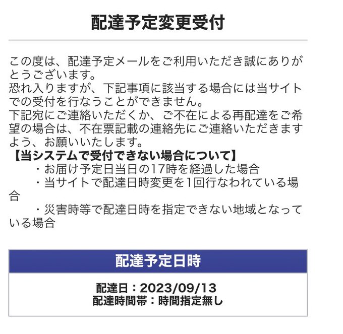 @OSHIKATUfamily そうなんですね! この前こうなった時は深夜に持戻りステータスになって、問い合わせたら 「多くて配りきれなくて勝手に持戻りにしてすみません」って言われたんですが、今回は輸送中のままです…。いつ届くのか不安になりますよね😔