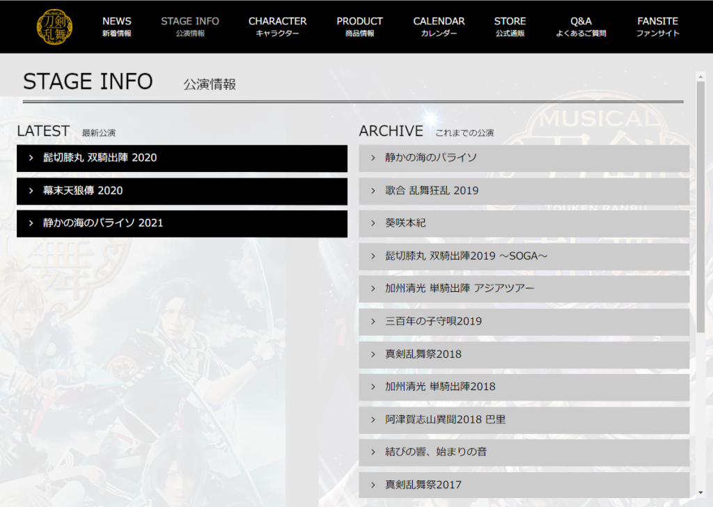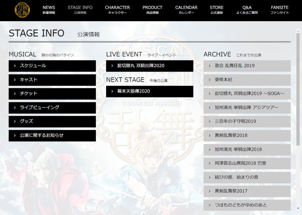 2020.06.29 まではこんな感じ。MUSICALとLIVEが分かれていた。